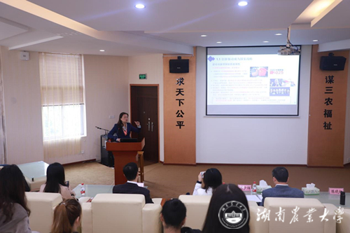 本网讯(公共管理与法学学院 胡扬名 杨盛强 曾娴)10月17日上午,中国工程院院士、湖南商学院校长陈晓红应邀于我校十教北302作了题为“数字经济时代的创新创业研究”的学术报告。学术报告会由湖南农业大学校长符少辉主持。校党委委员兰勇、公共管理与法学学院院长李燕凌、学院研究生导师、全体硕士研究生、部分本科生现场聆听了报告。