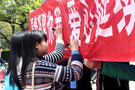 此外,还有许多热心的同学自愿帮忙,对外宣传此次募捐活动。食品科技学院的袁周率同学多次号召身边的爱心人士捐款,经他账户向支付宝转账就高达3100元;教育学院的张瑞同学自愿在学校发起传单,宣传募捐活动,引起更多人的注意;研究生院团委、研究生会的成员更是持续两天坚守在募捐现场,不辞辛劳为这个活动贡献自己的一份力量。