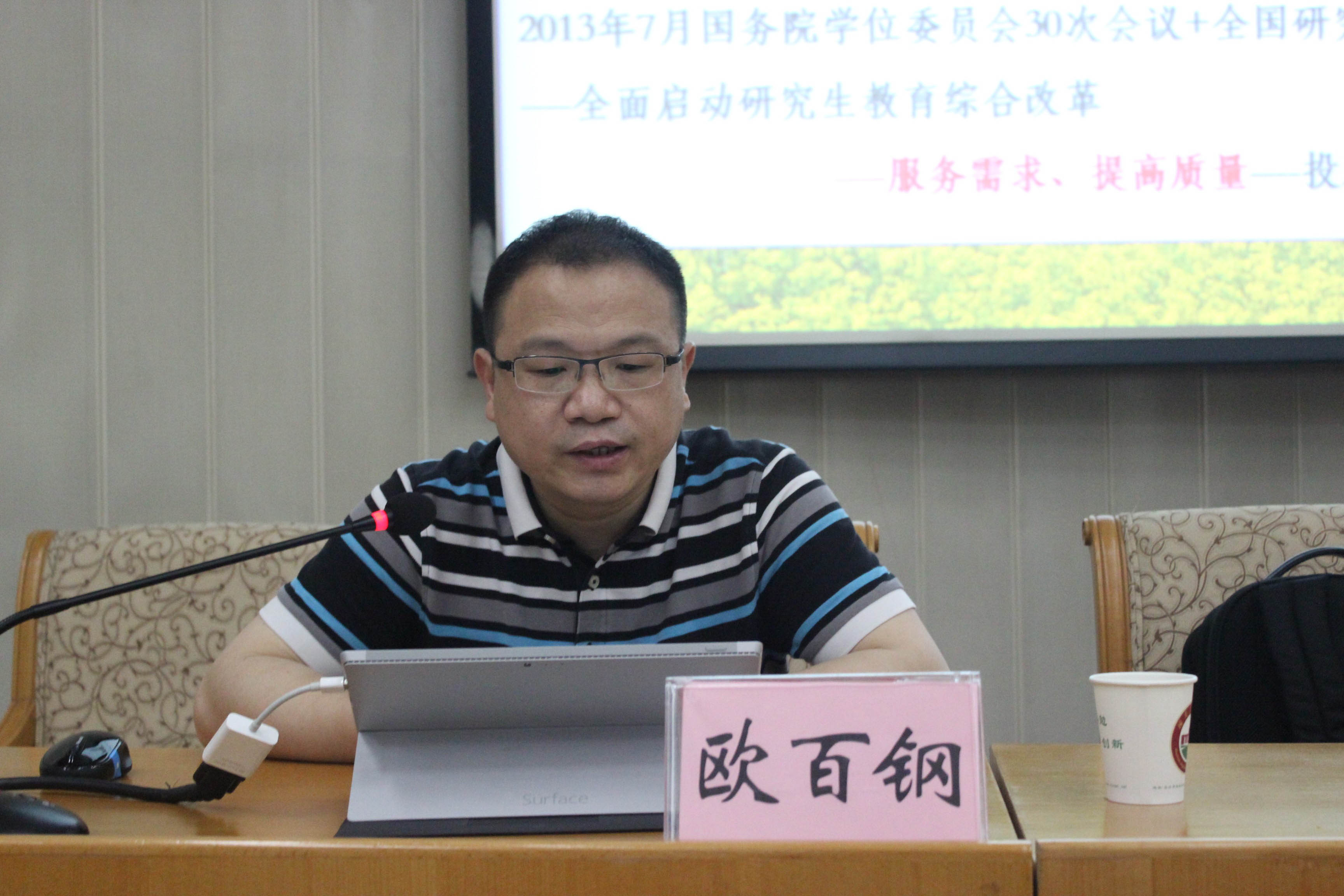 接下来湖南农业大学党委委员、副校长兼研究生院院长邹冬生主持学术交流会,国务院学位办欧百钢处长应邀做了大会主题报告。报告主要围绕“培养”主题展开。