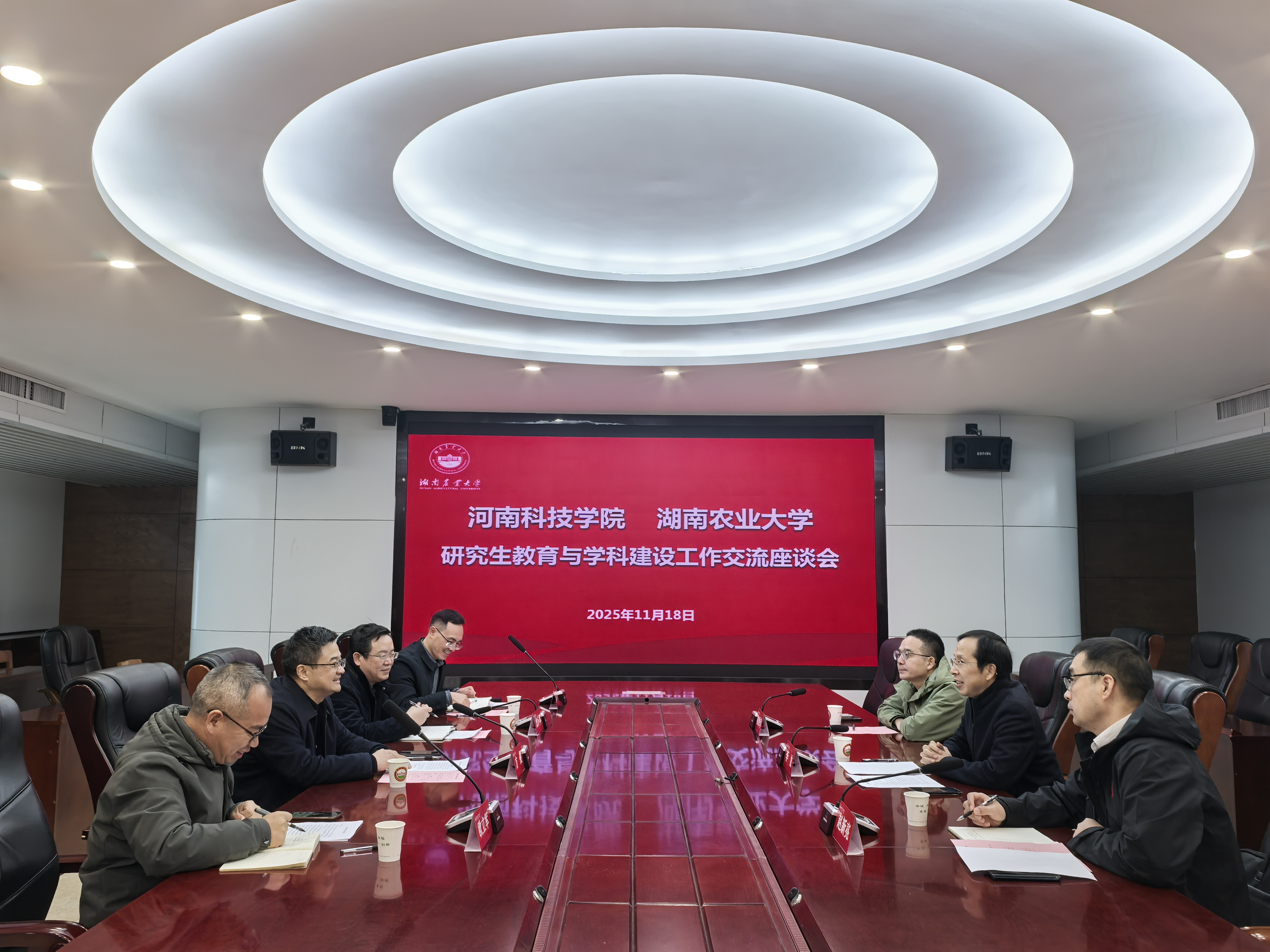 李波处长对我校的热情接待表示感谢,并介绍了河南科技学院研究生教育的发展现状以及此次调研的目的。他表示,湖南农业大学在研究生教育、学科建设等方面积累了丰富经验,希望通过深入交流,学习借鉴宝贵做法,以推动河南科技学院相关工作的创新发展。